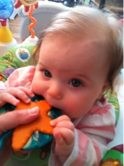 I think Miss Allie will be cutting her 3rd bottom tooth but is smiling most of the time, when she isn’t trying to chew on something!