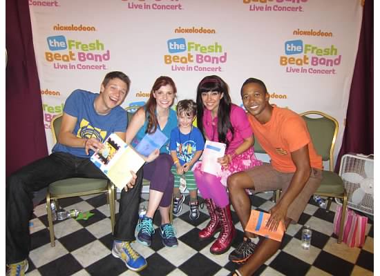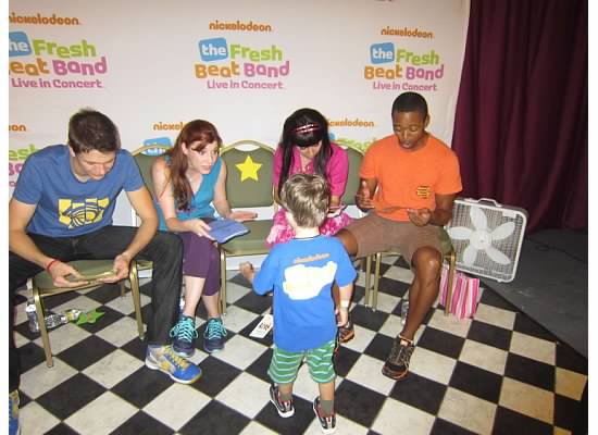 Jack loves the music and we feel like these life experiences are so valuable. We were impressed – they do 2 shows a day and gave all the kids big smiles and were very sweet to them all. Afterwards, Jack and Maegan got to meet the Fresh Beat Band and take pictures. He got to give out the cards he made and they both had a great day.