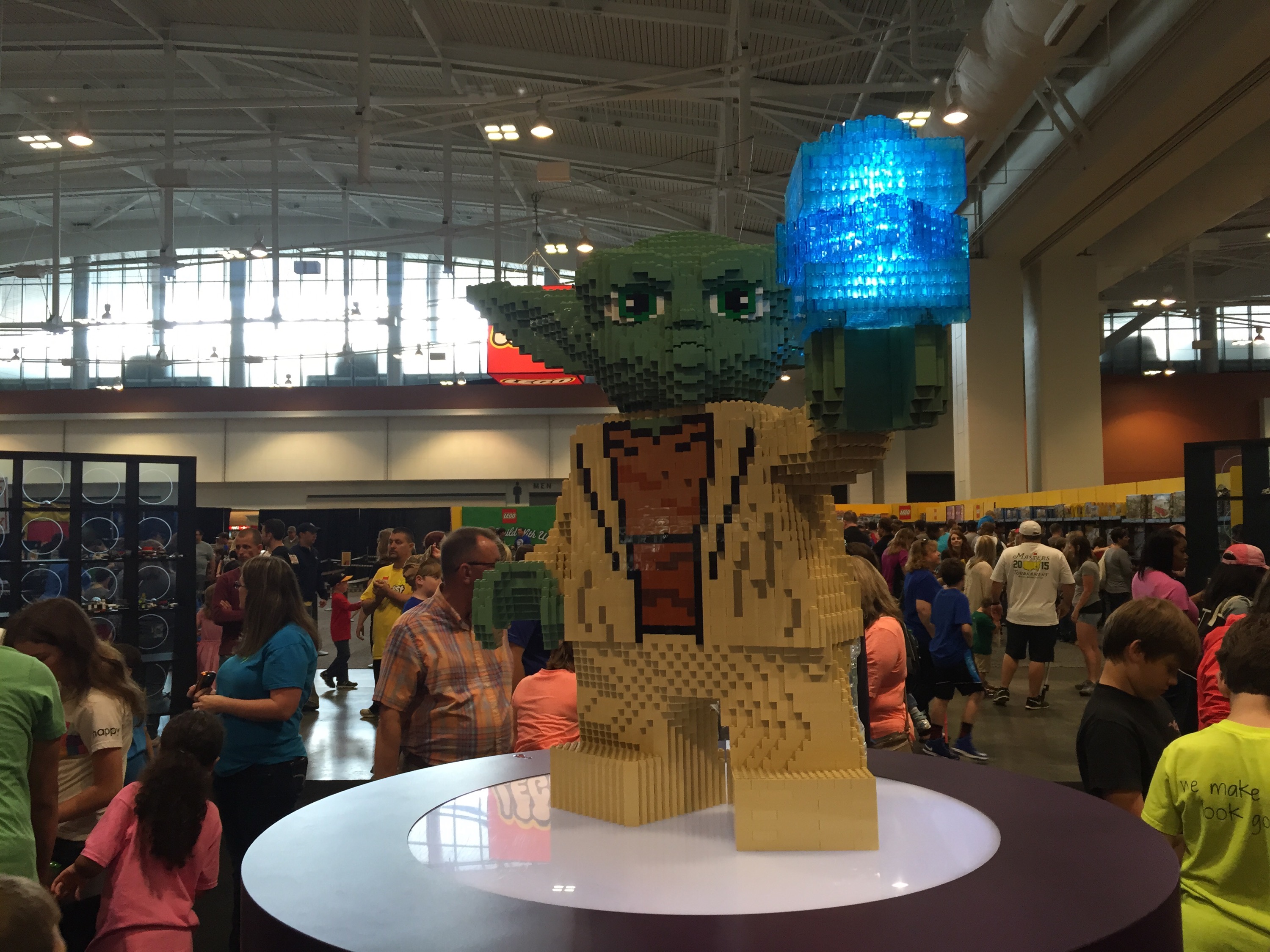 Areas were clearly designated and it was very spacious, with plenty of larger-than-life figures displayed. My kids both wanted to look around but really wanted to get in on the action. There was a nice mix of displays, activities, shopping, and areas to use LEGO’s. I loved how they broke it out so that Star Wars was all together, Disney, Ninjago, etc. My littles were hard at work and it was time for a snack break before we knew it. Honestly, we were unimpressed with the food options but I’m not sure if that was related to this specific venue or the event. Everything was incredibly overpriced – and I do understand that snacks, drinks, and food will always be jacked up at these type of events. What I don’t like is when the quality and options are so poor on top of overpricing everything including water. For the size of the venue and the amount of people, it just seemed the food area was poorly planned and managed.