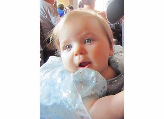 This is one of my favorite pictures that we took during our trip to Walt Disney World in 2012. My little 6-month-old dressed up at Cinderella’s Royal Table. Her blue eyes perfectly matched her dress.