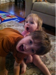 Our funny little lady is 14-months-old, and started crawling up the stairs months ago. Now that she is up and walking, she seems to want to start climbing. Luckily, her big brother tries to keep an eye on her – unless they are wrestling on the livingroom floor. Then all bets are off.