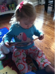 She is a little unsteady, but, Allie finally began walking earlier this month! She is very happy about it and we are as well.